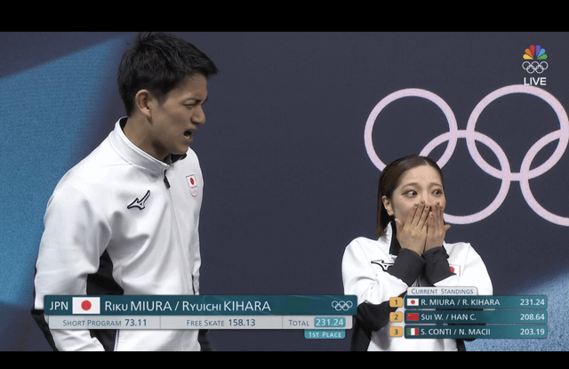 Their performance tonight was one for the ages. I was so happy I got to watch it. I knew then that they had a big shot at the gold. Such a redemption story after their mistake in the short program yesterday. They earned that medal. So happy for them! Congratulations Japan!