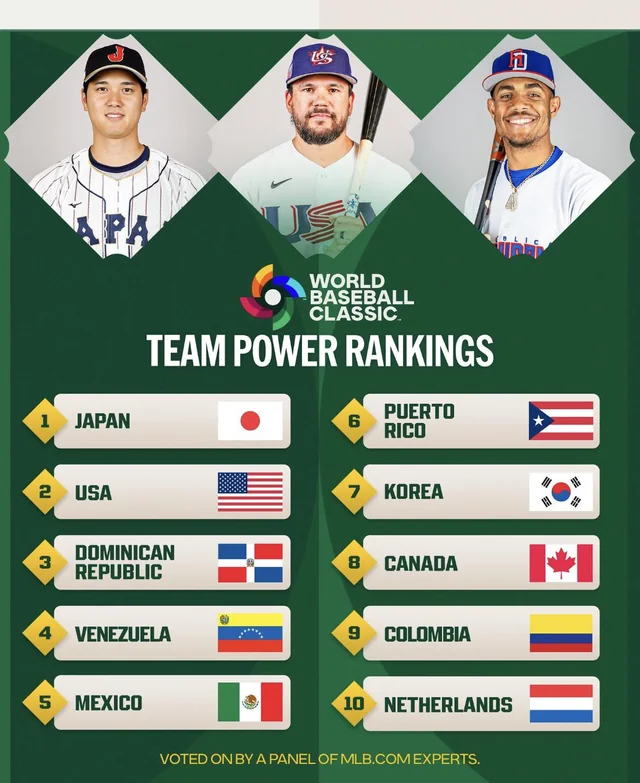 MLB.comの有識者パネルが作ったという「WBC(ワールド・ベースボール・クラシック)強さランキング」が話題に。